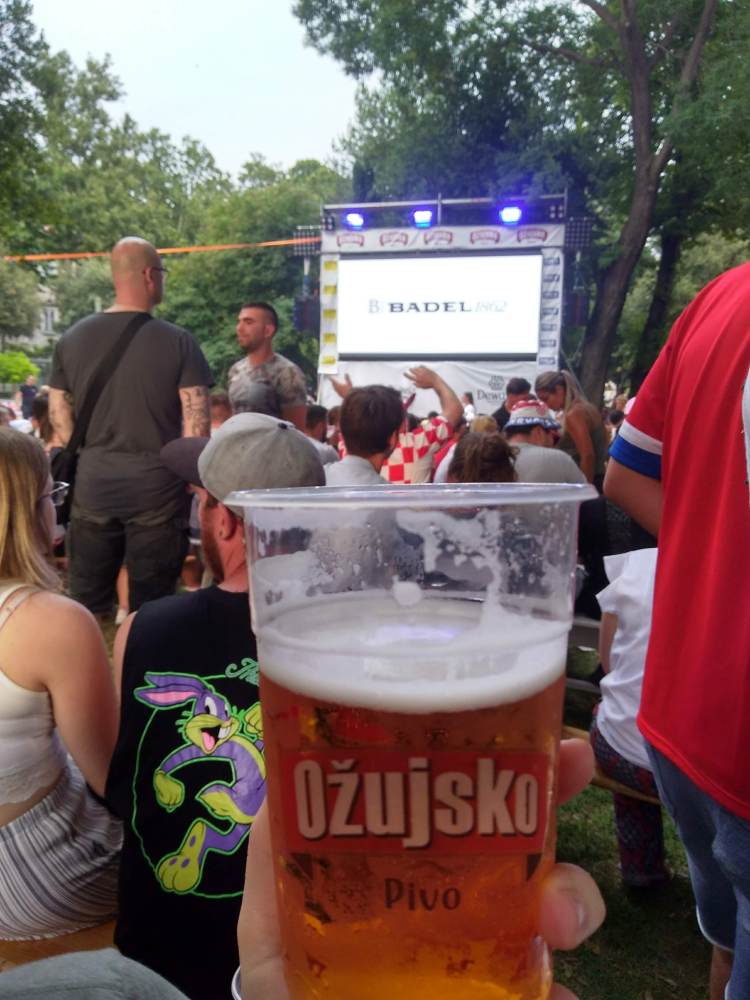 En ese mar de croatas, me encontré con varios compatriotas. Siempre tan nosotros, siempre ruidosos, siempre llamativos, siempre cantando el himno a los gritos y siempre creyendo que tenemos el partido ganado. Literalmente, éramos un grupo de apróx. 30 argentinos, varios con camisetas y banderas, jugando a los barrabravas con una pivo (cerveza) en la mano, ovacionando a Messi y seguros de que íbamos a golear a los croatas y encima tener el tupé de festejarlo en su propia casa y cara.