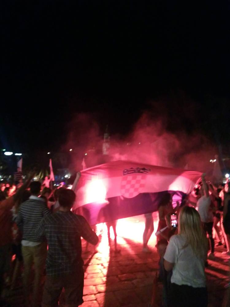 Era así efectivamente, porque nos rodeamos de croatas para poder ver (sentadas precariamente en el piso) el partido por un lugar en la Semifinal entre Croacia y Dinamarca.