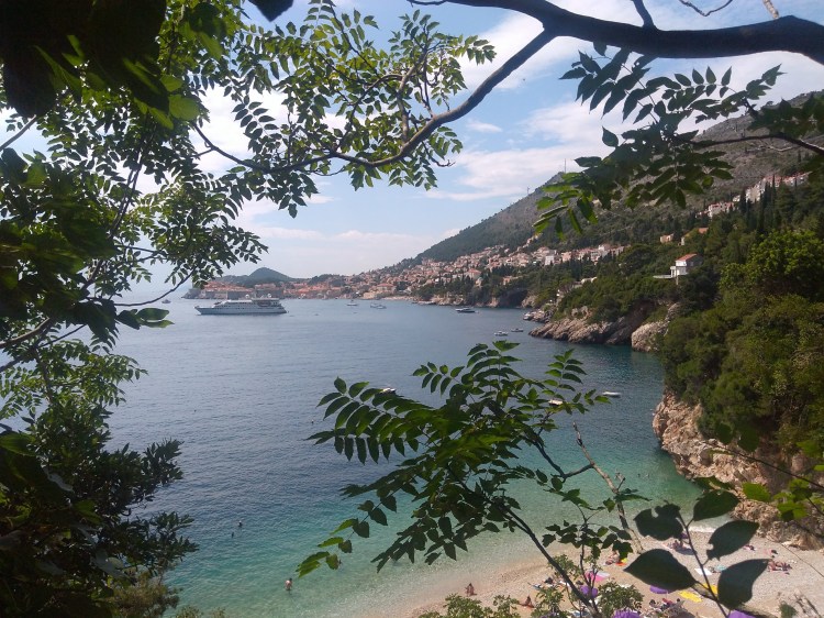 Lo empecé yendo a la playa, caminando lo que fuera necesario (unos 2,5km seguro) para llegar a la que me habían recomendado como la mejor de la zona. Bajo un sol abrasador llegué a Sveti Jakob. Todo el rally valió bien la pena. Es la playa que mejores vistas de la muralla tiene: