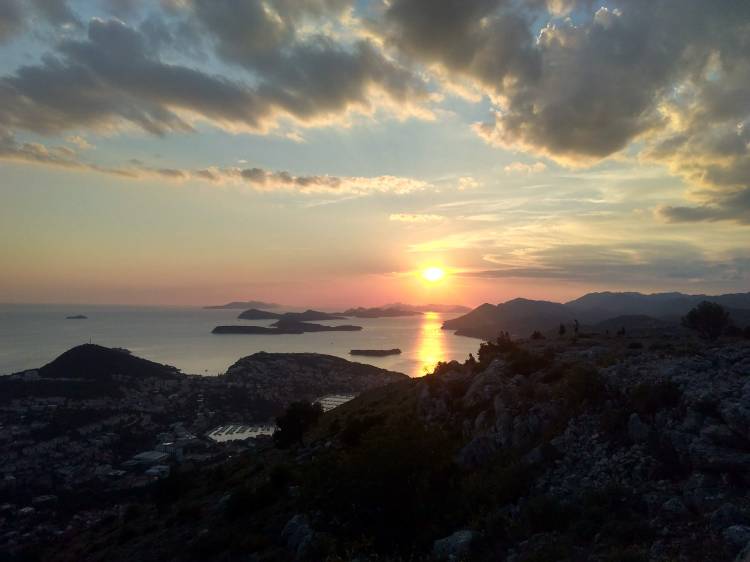 Me pasé varias horas viendo una puesta del sol alucinante en el mejor punto panorámico de la ciudad: el Monte Srd. El espectáculo fue completo: ocaso, nubes rosas y el anochecer sobre la Old Town.